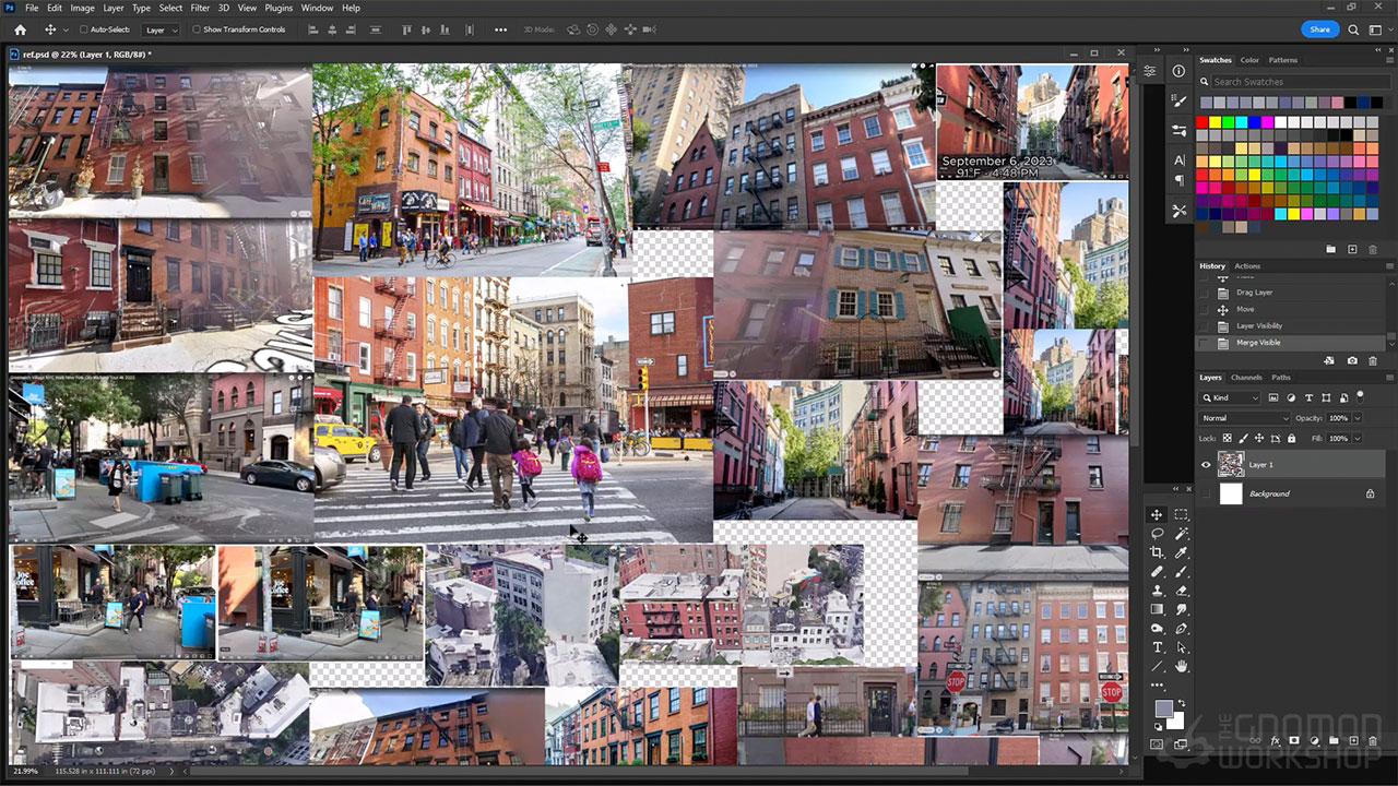 The workshop begins with gathering reference images and using them to create an environment concept thumbnail through photo-bashing. Tony then guides you through the process of building a New York City set, starting in Photoshop to create correct-scale architectural 2D blueprints. These blueprints are then imported into Maya to build a complete production-ready 3D set in a modular and adjustable way. After building the set, Tony covers the basics of texturing, lighting, and camera setups in Maya. The workshop then moves on to cleaning and packaging the 3D file and rendering using Arnold in Maya.