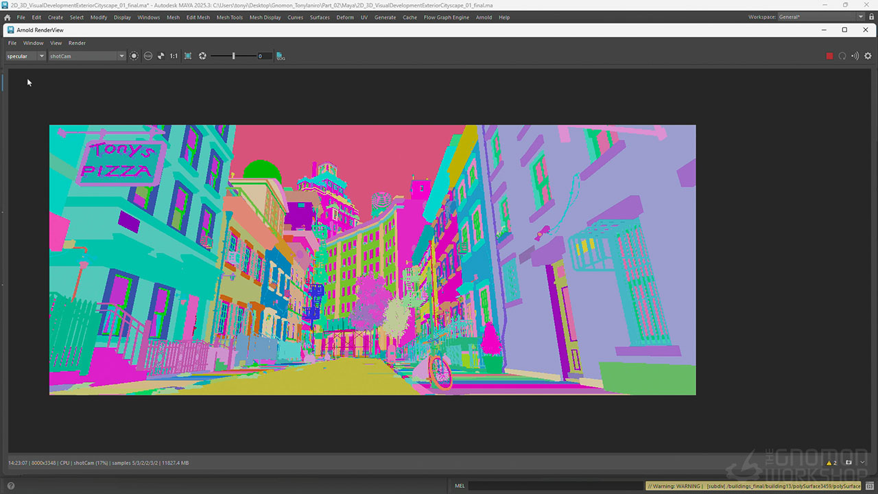 Following a structured approach, Tony’s workshop ensures scenes are optimized for high-resolution rendering with full color, lighting, and textures using Arnold. The workshop covers complete scene texturing, lighting setup, fog integration, and camera placement within Maya. Artists will also learn how to clean and package 3D files, as well as how to render essential passes in Arnold.