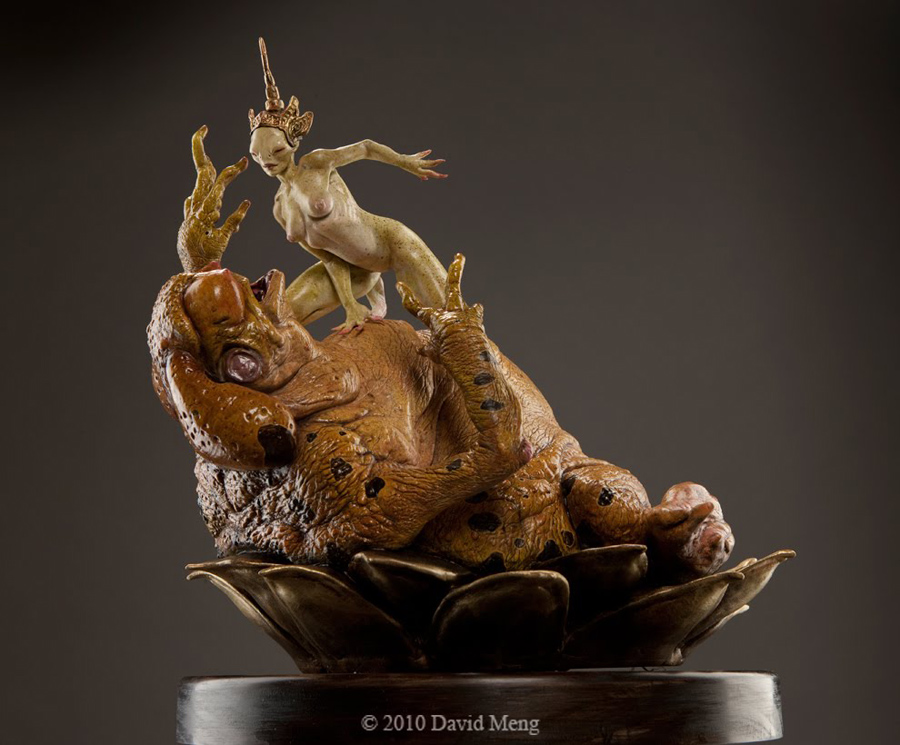 David Meng graduated from the University of Michigan, Ann Arbor in 2000, with a Bachelors Degree in Fine Art, and took Dick Smith's Advanced Professional Make-up Course shortly after. Interested in bizarre, funny and grotesque things from a young age, David had a natural leaning towards working as a creature/character designer in the film industry. David started his career working as a designer/sculptor for various effects houses in LA. In 2004 he was invited to join Weta Workshop in New Zealand, just in time to work on King Kong and The Chronicles of Narnia. He spent the next few years working on many of Weta's other projects, most notably District 9. On District 9, David served as Lead Creature Designer for the movie's Prawns. Other films David has worked on include: Alien Vs. Predator, Black Sheep, Under The Mountain, and The Hobbit. Most recently David worked as part of the concept team that designed the Kaijus for Pacific Rim. His main contribution to the film was the design of the Leatherback Kaiju. David's work has been published in various art-of books and been exhibited at both CoproGallery and The Hive, as well as the Dowse gallery in New Zealand, and also in Shanghai. His work has been included in the internationally renowned publication Spectrum five times (including this year's upcoming edition), and has so far won two Silver awards and one Gold.