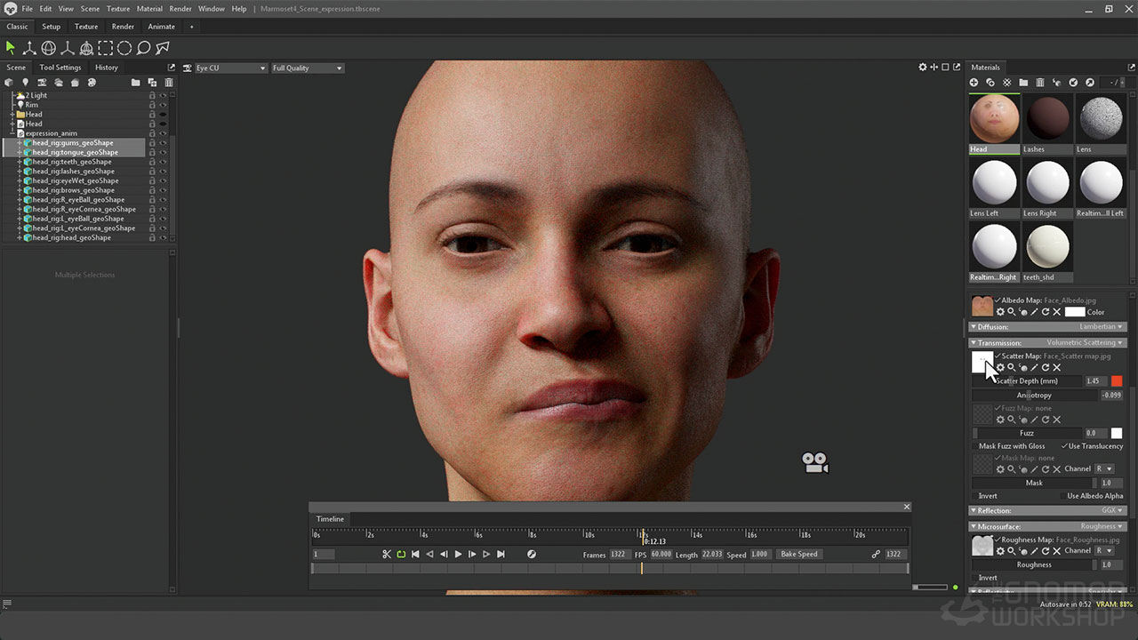 This workshop is designed for intermediate-level artists who are looking to dive into the world of realistic facial performances. Project files are provided with this workshop, including the shapes required to build the rig system. For additional resources, artists can download the Free 3D Model Scan from 3dscanstore.com; additionally, 3dscanstore’s Gorilla Écorché 3d model is available for a small fee from their website.
