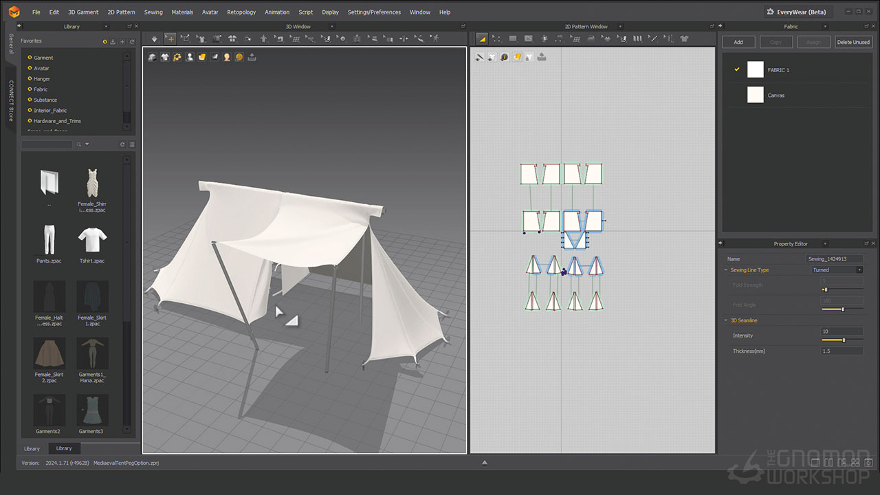 With all the basics covered, Erika then demonstrates how to create a basic denim jacket, working with a pattern provided. Artists can follow along with the workflow from start to finish. Additionally, Erika provides a bonus tutorial tailored for environment artists, focusing on creating a mediaeval tent.