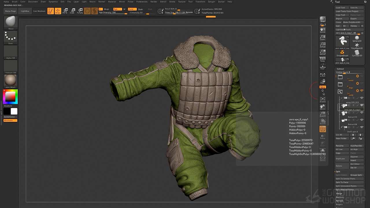 Due to the technical nature of this workshop and the processes covered, this tutorial is recommended for intermediate and advanced digital artists with previous experience using ZBrush.