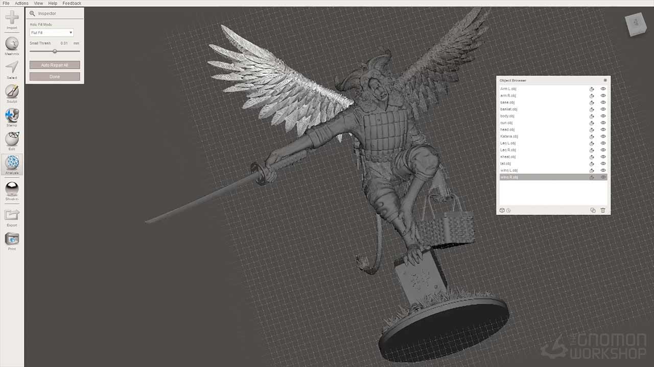 By completing this workshop, you will develop a firm grasp of what is needed to take a ZBrush model into the physical realm. You’ll learn how to create hollowed-out, keyed, and watertight meshes, and understand how to take advantage of tools like Meshmixer and PreForm to successfully engineer models for 3D printing — in particular for resin printers.