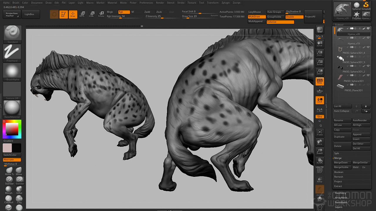 In this course, Krystal Sae Eua shares her process for creating a digital animal sculpture from start to finish. Working in ZBrush, Krystal demonstrates how she approaches animal anatomy, pose and composition. She reveals her sculpting techniques for blocking, secondary details and tertiary details using an array of ZBrush tools and techniques that include her approach for fur sculpting and polypaint. Krystal then takes the model into Maya for simple UV arrangement, then Keyshot for final rendering and presentation. For artists looking to develop their approach to animal anatomy, sculpting and detailing, this title provides a valuable lesson from one of the industry's senior artists.