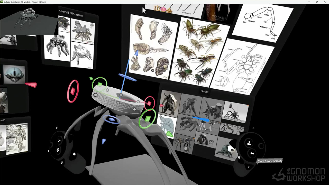 This workshop guides artists through the process of designing and sculpting a conceptual mech in VR using Adobe Substance 3D Modeler. ZBrush is used to fine-tune the model’s details, and the final presentation is taken care of in Blender.