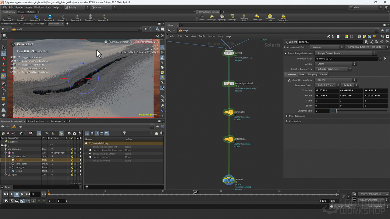 David’s Sand Sinkhole Houdini file is provided as a learning resource with this workshop. Throughout the workshop, he also uses various Megascan assets.