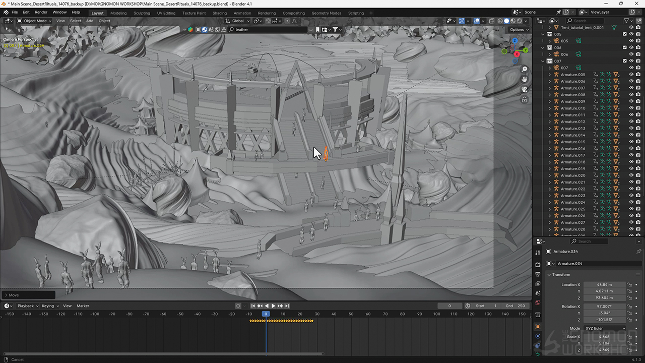 Throughout the workshop, Tiago provides tips on writing down the main elements of a story, as well as how to find and organize essential references. He then moves on to sketching and demonstrates how to test the initial ideas using basic tools in Blender. He discusses the importance of camera angles and lighting and how to generate several renders to envision your world as it comes to life. For the final steps, Tiago moves into Photoshop, where he shares his techniques for painting, photo-bashing, and polishing a chosen scene.